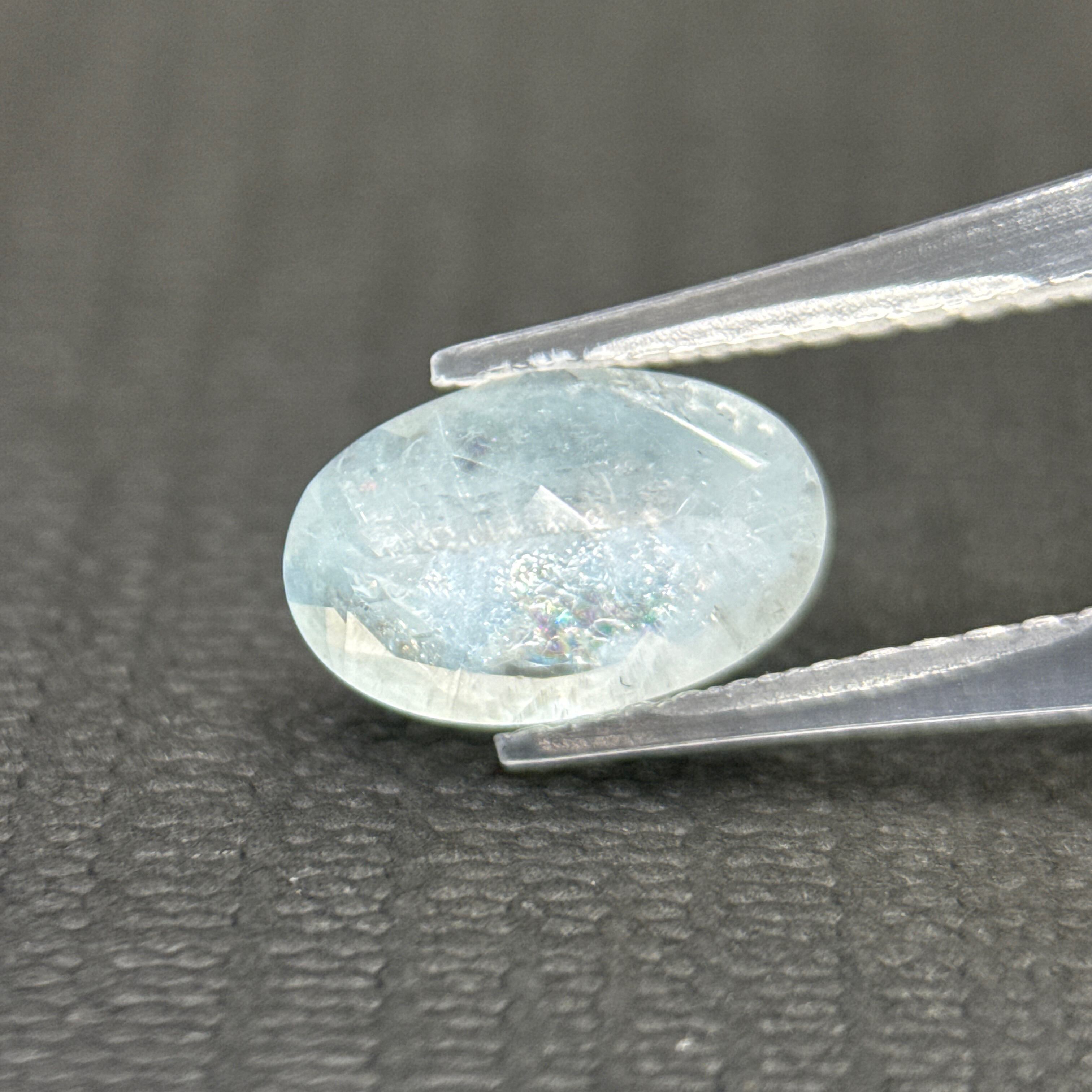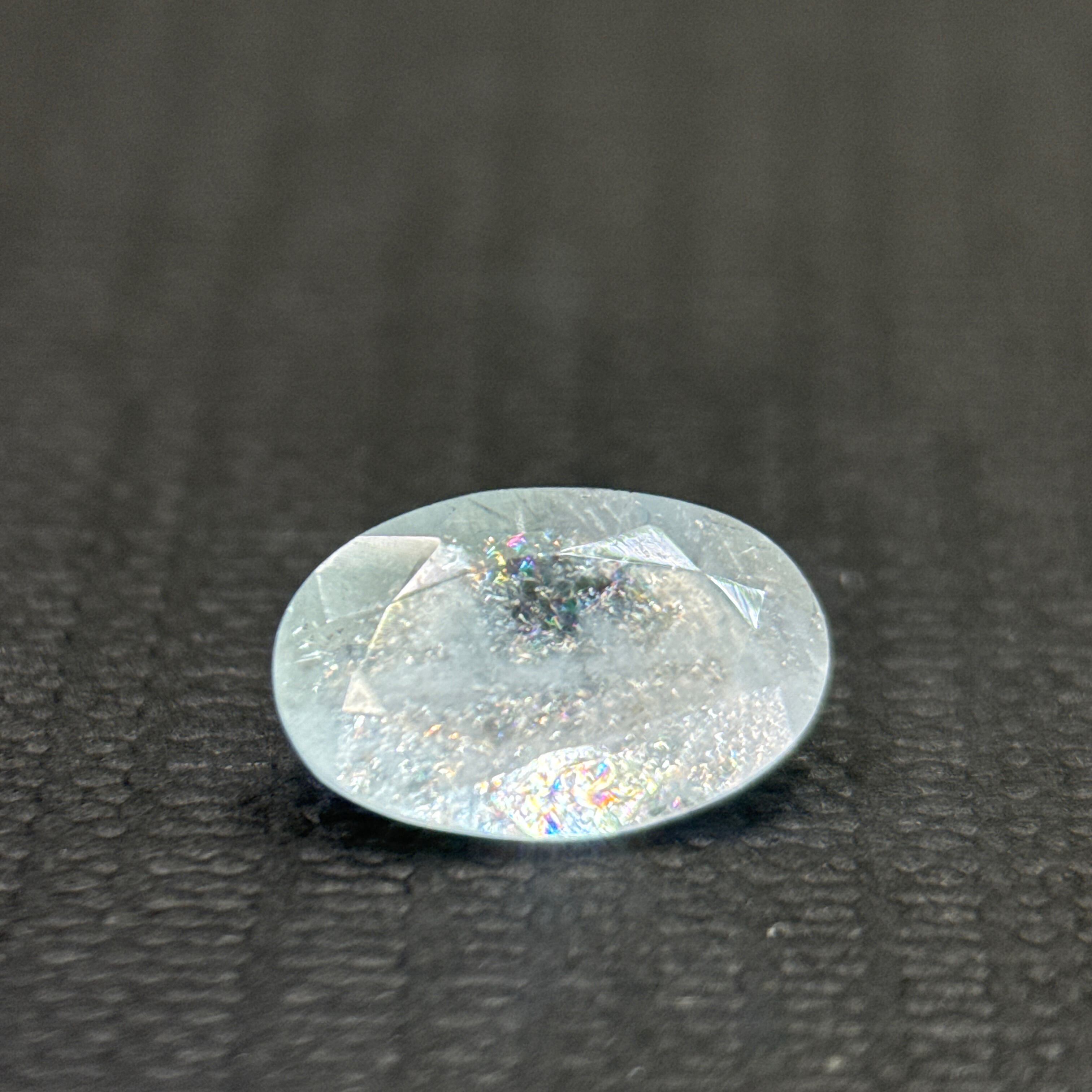 アクアマリンの爽やかなブルーにイリデッセンスの虹がたっぷりと入った新しいアクアマリンです。