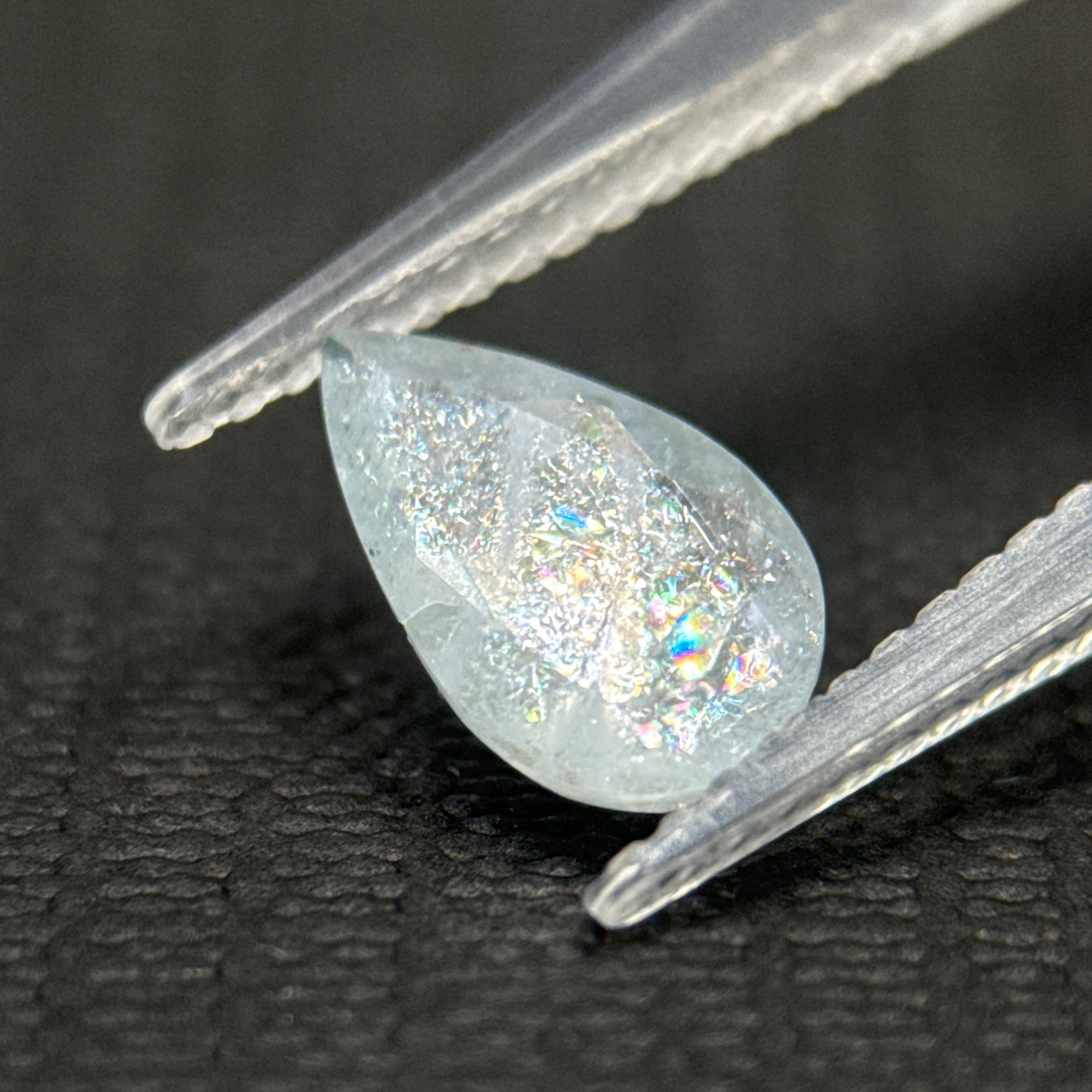 アクアマリンの爽やかなブルーにイリデッセンスの虹がたっぷりと入った新しいアクアマリンです。