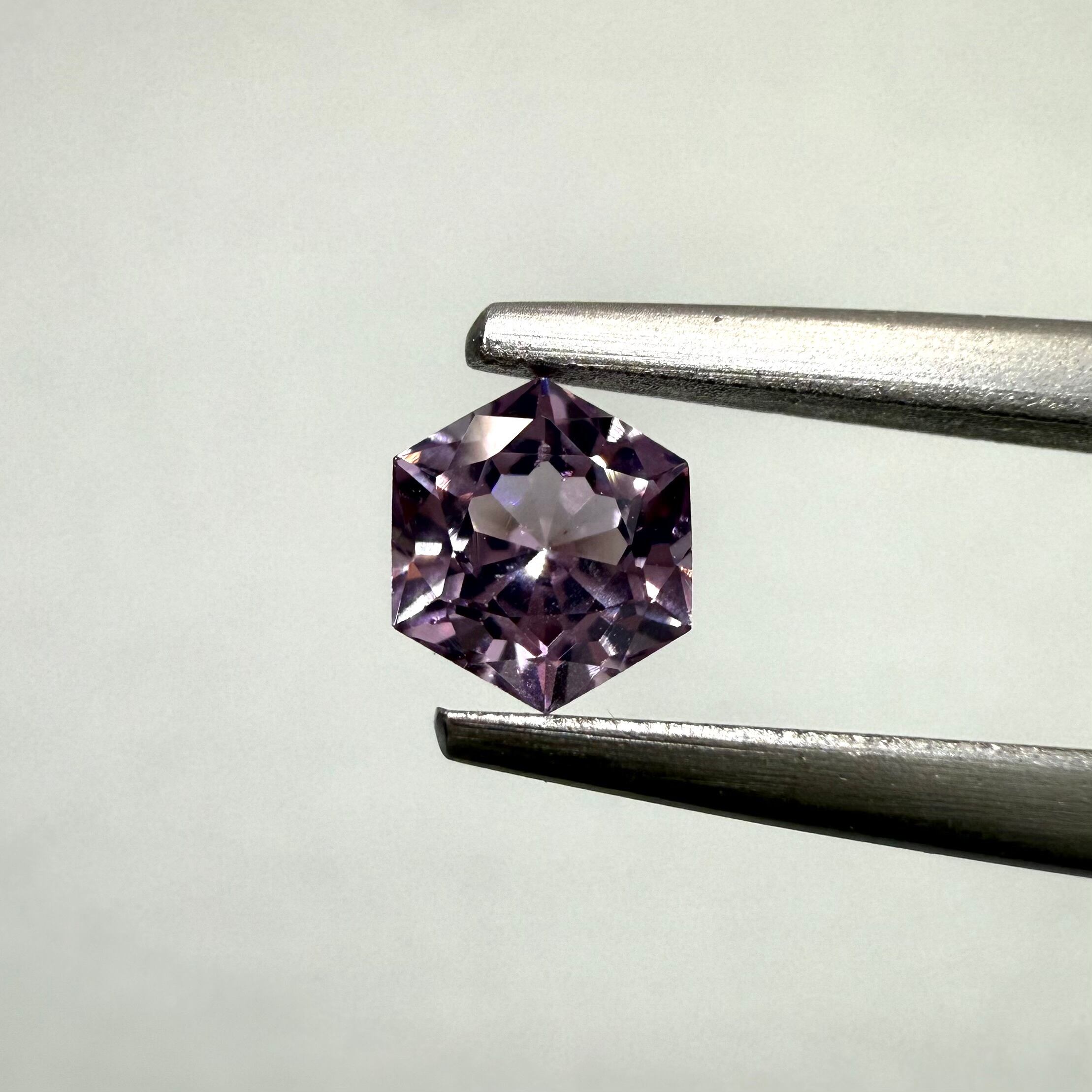 コレクターの多いヘキサゴンカット。スピネルのクールな輝きを引き立ててくれます。