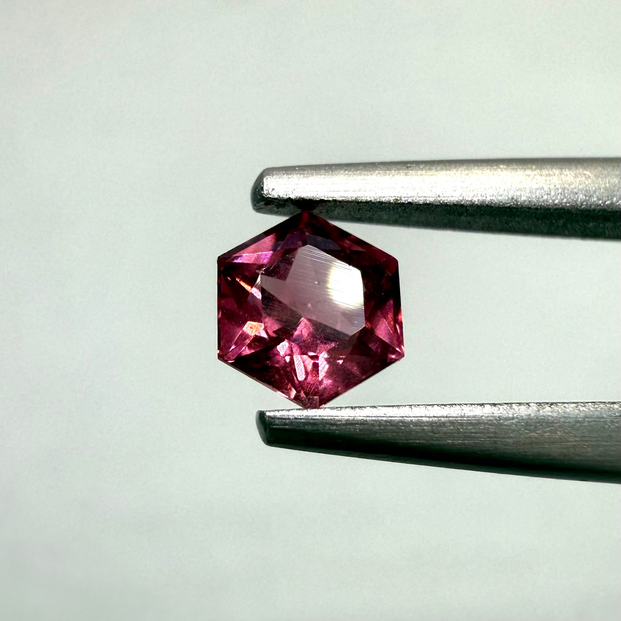 コレクターの多いヘキサゴンカット。スピネルのクールな輝きを引き立ててくれます。