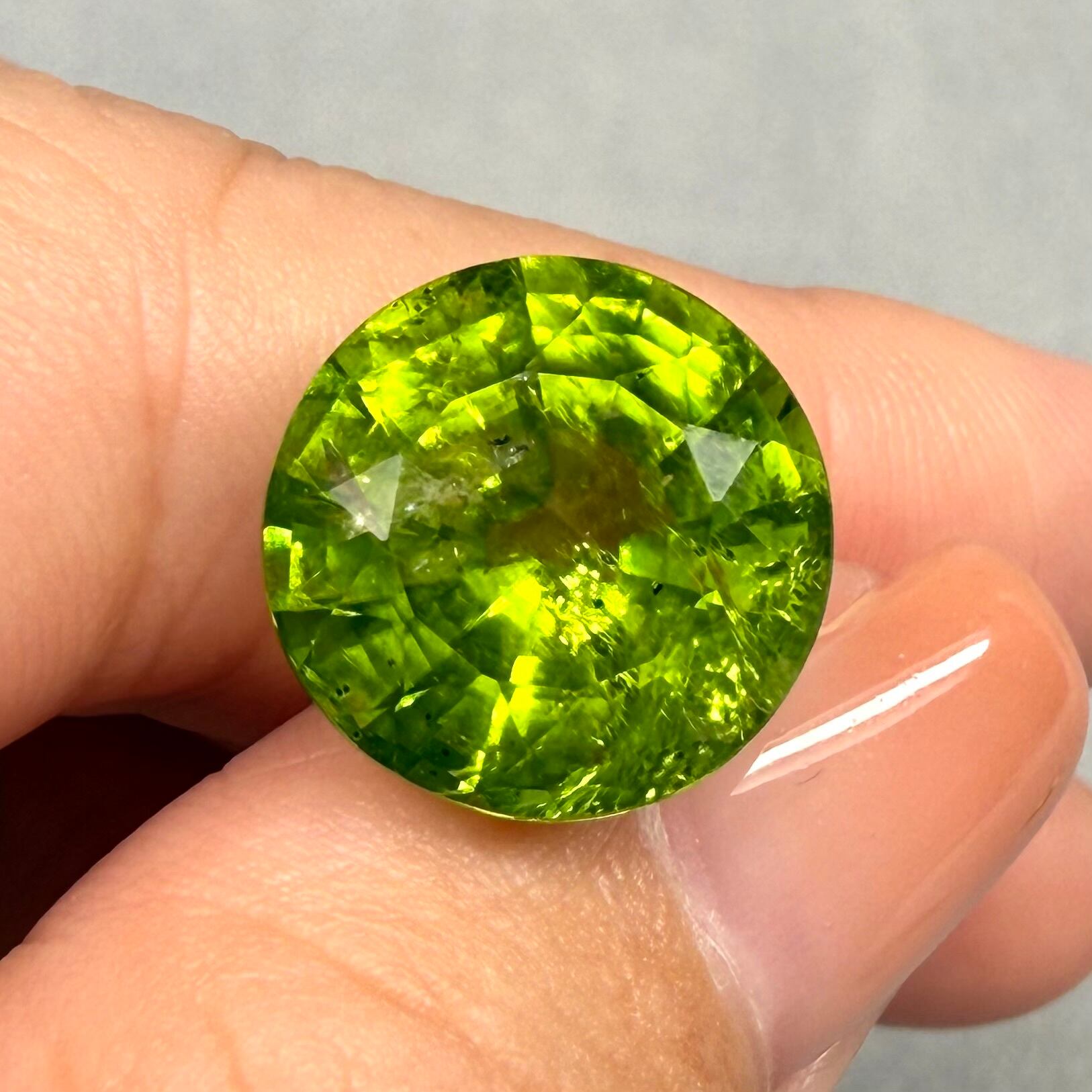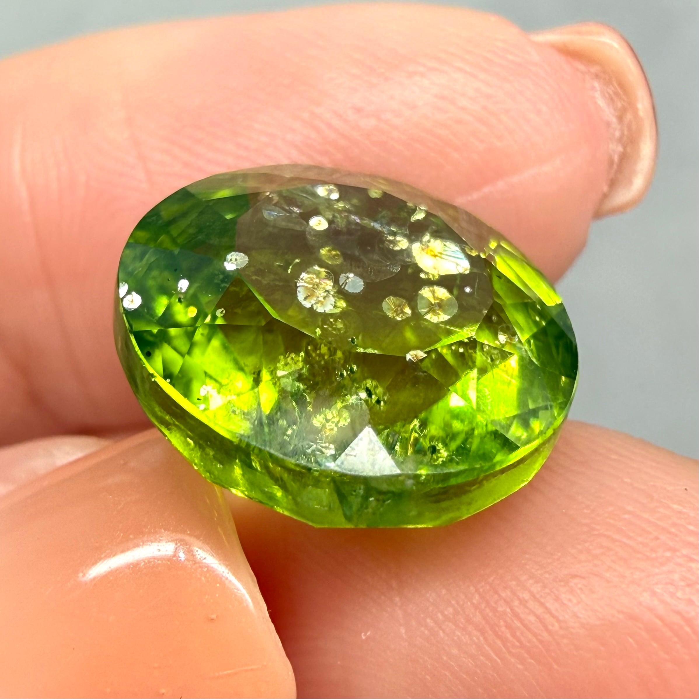 ペリドットらしい優しいイエローグリーンの中に時折みえるダーキッシュな影がかっこいいです。