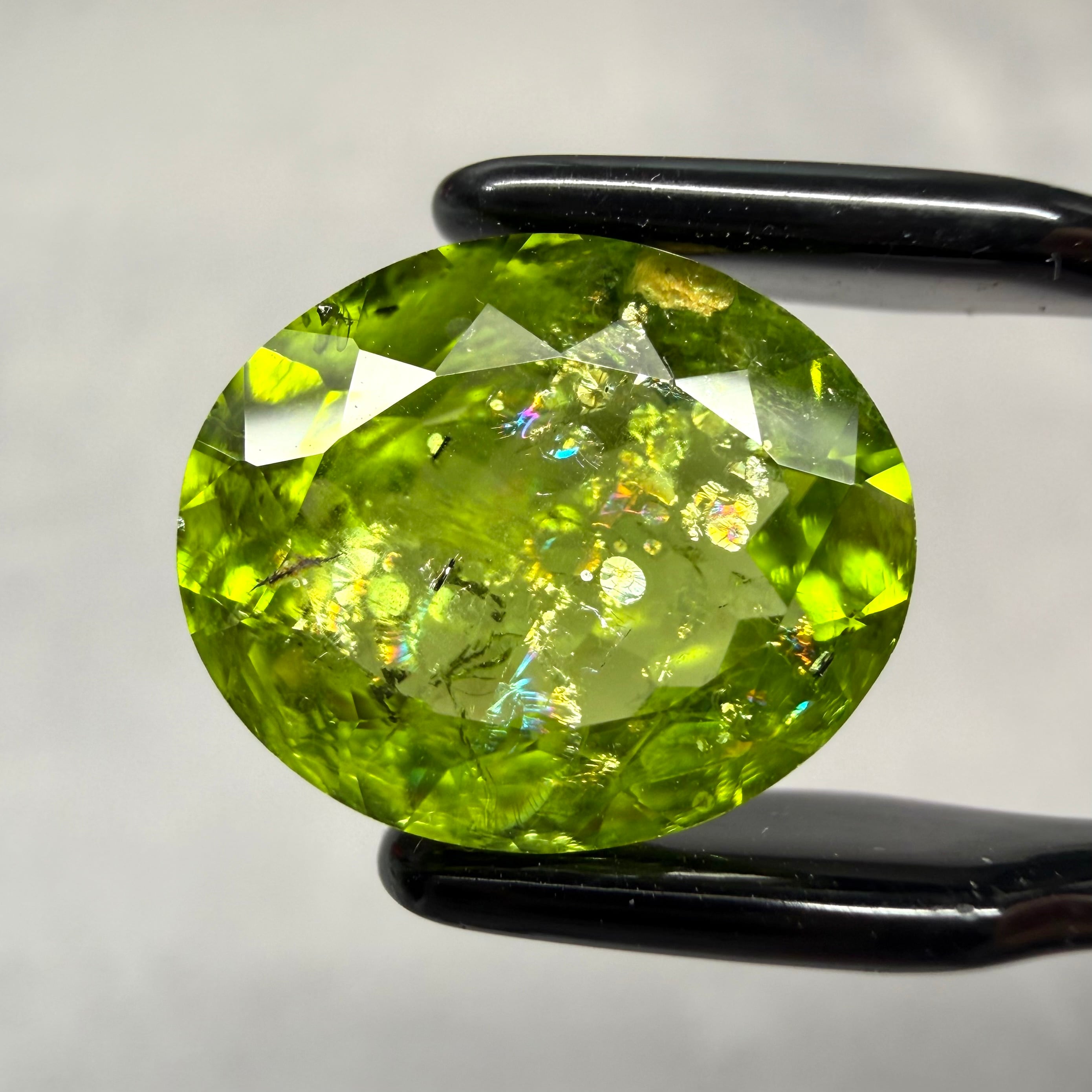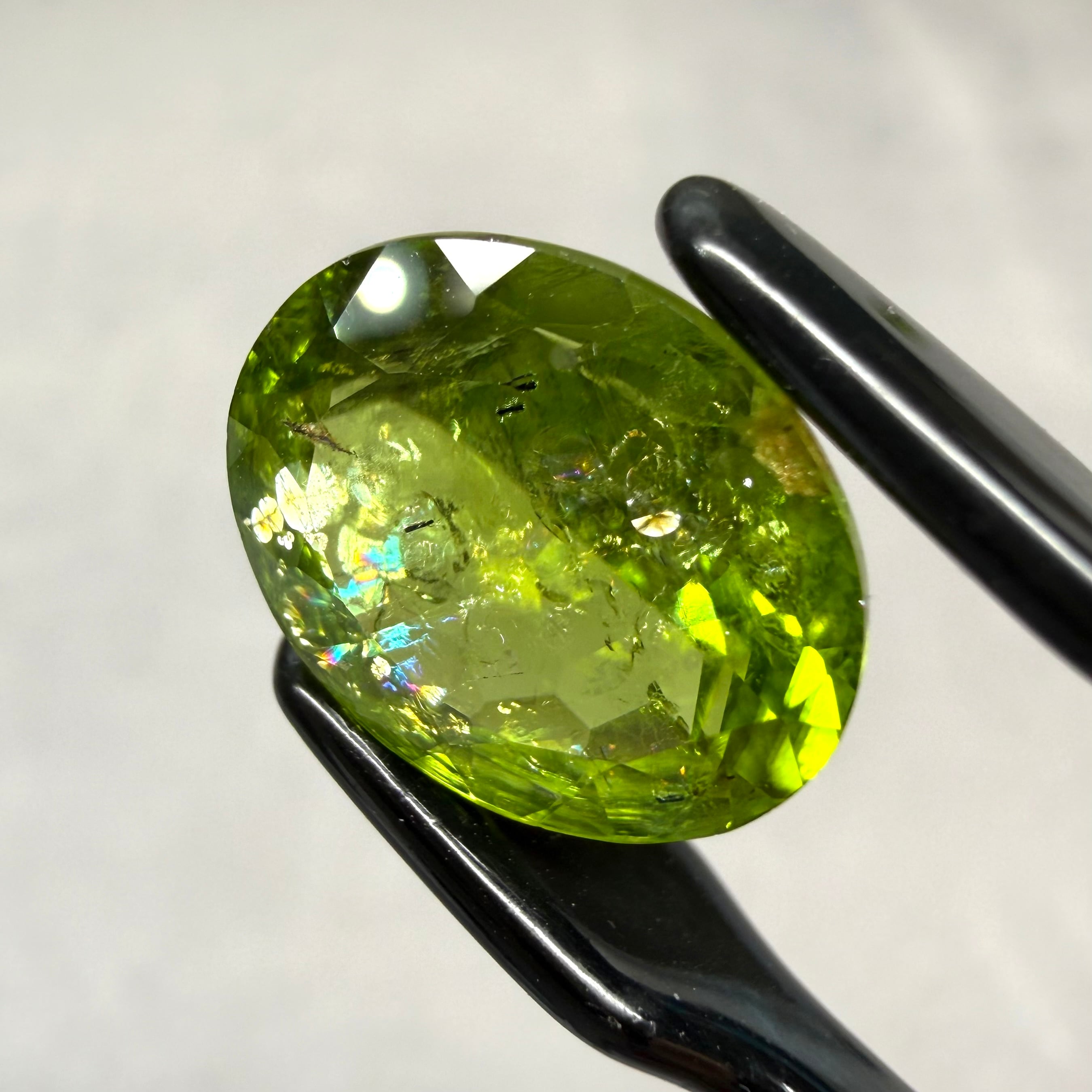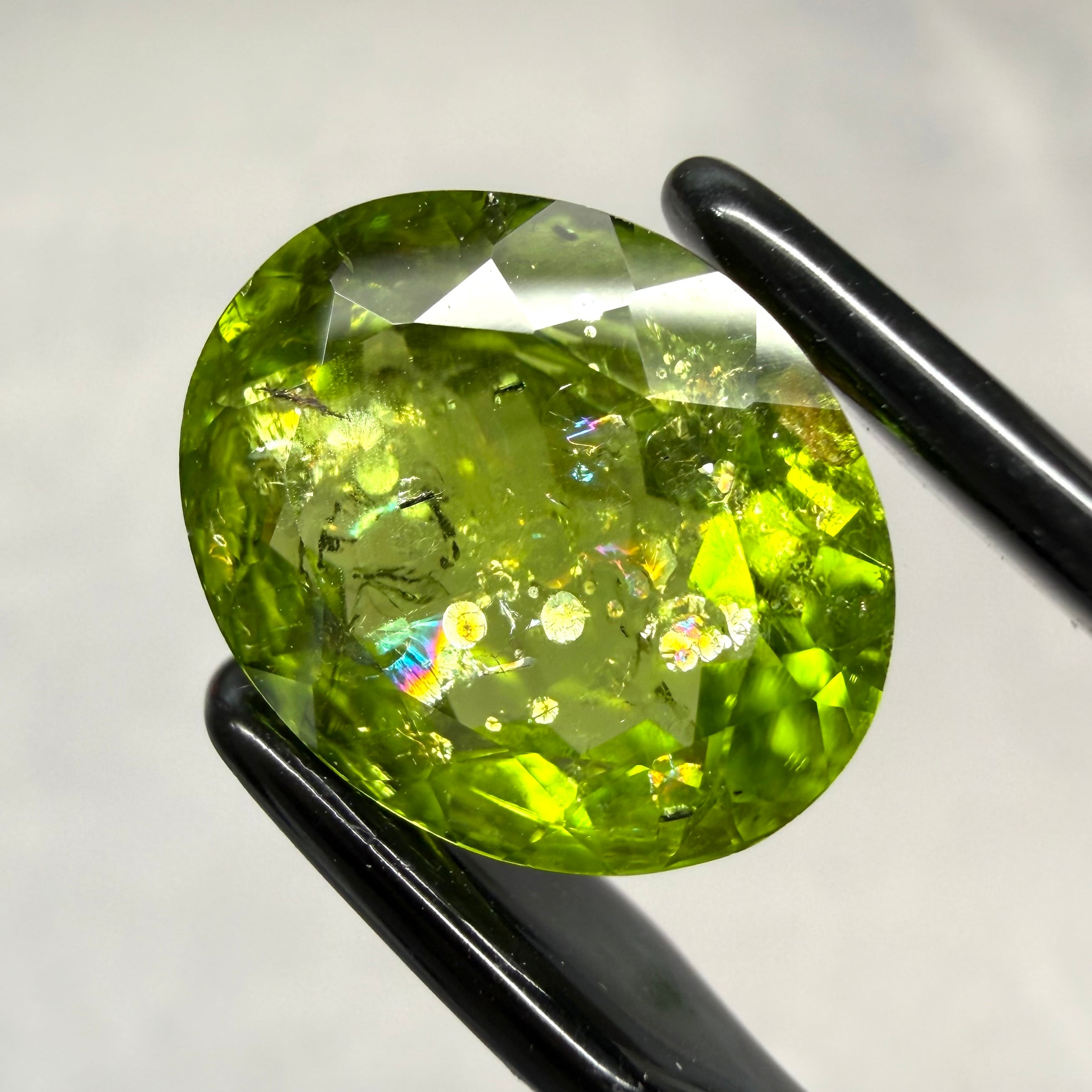 光に反射すると虹のよう華やかに輝き、インクルージョン好きの心がときめくところが推しのポイントです。