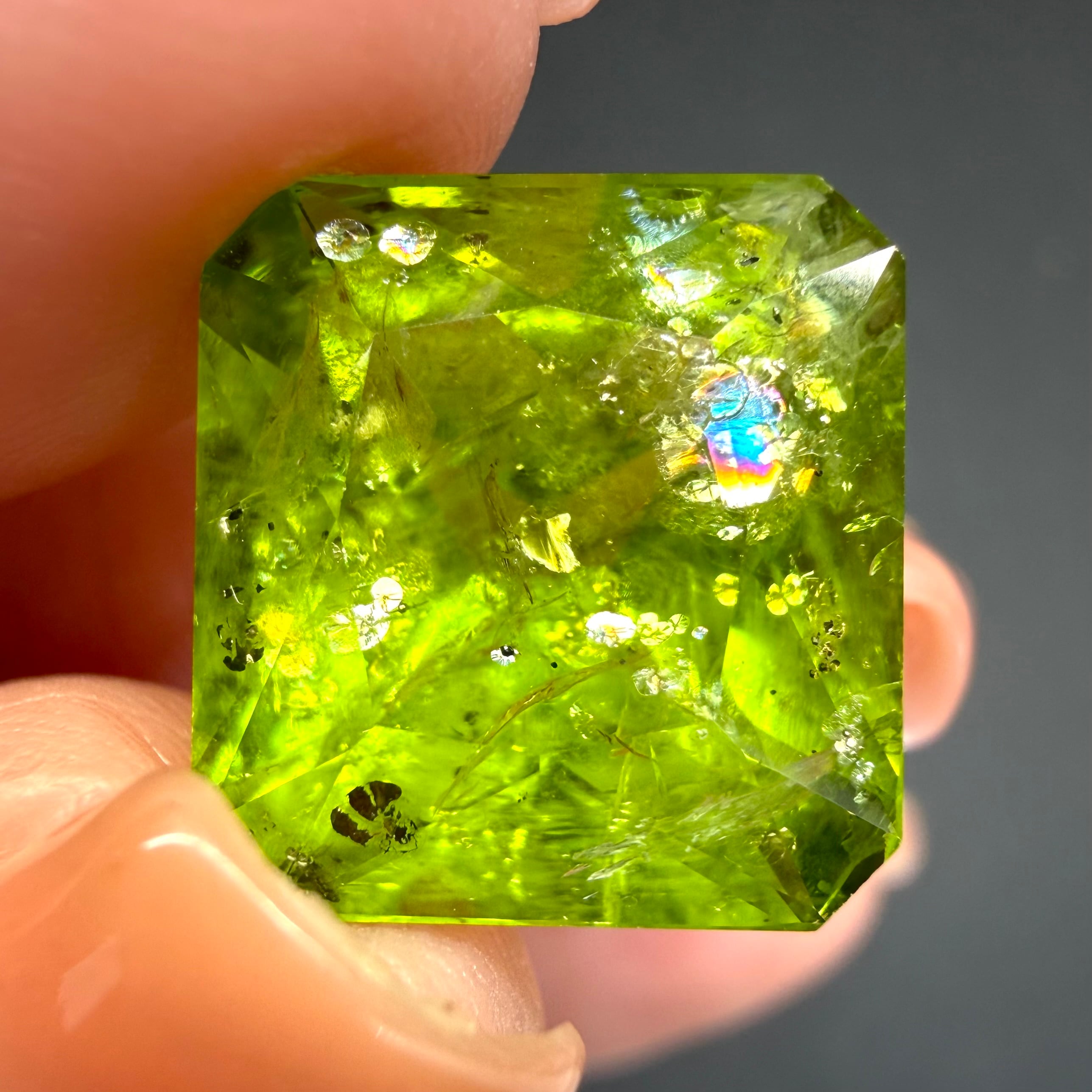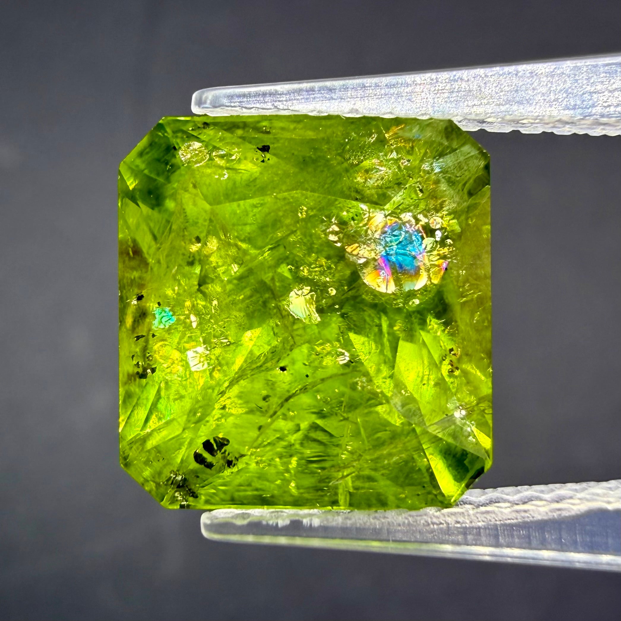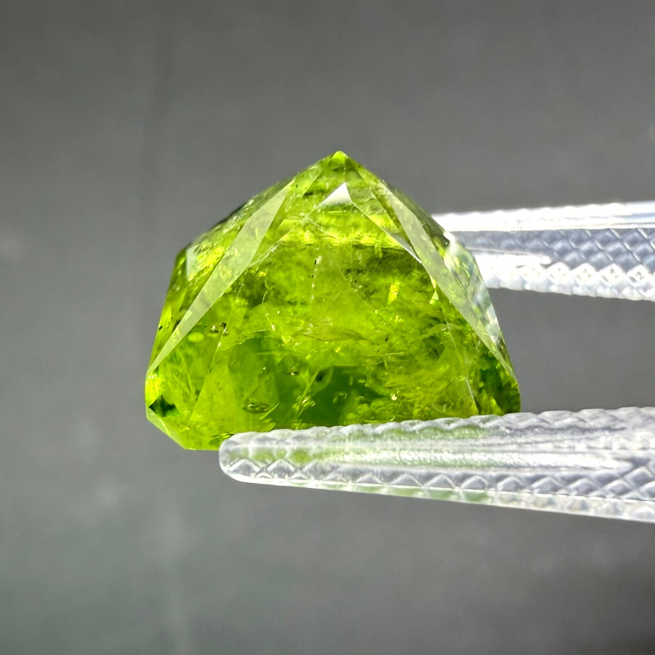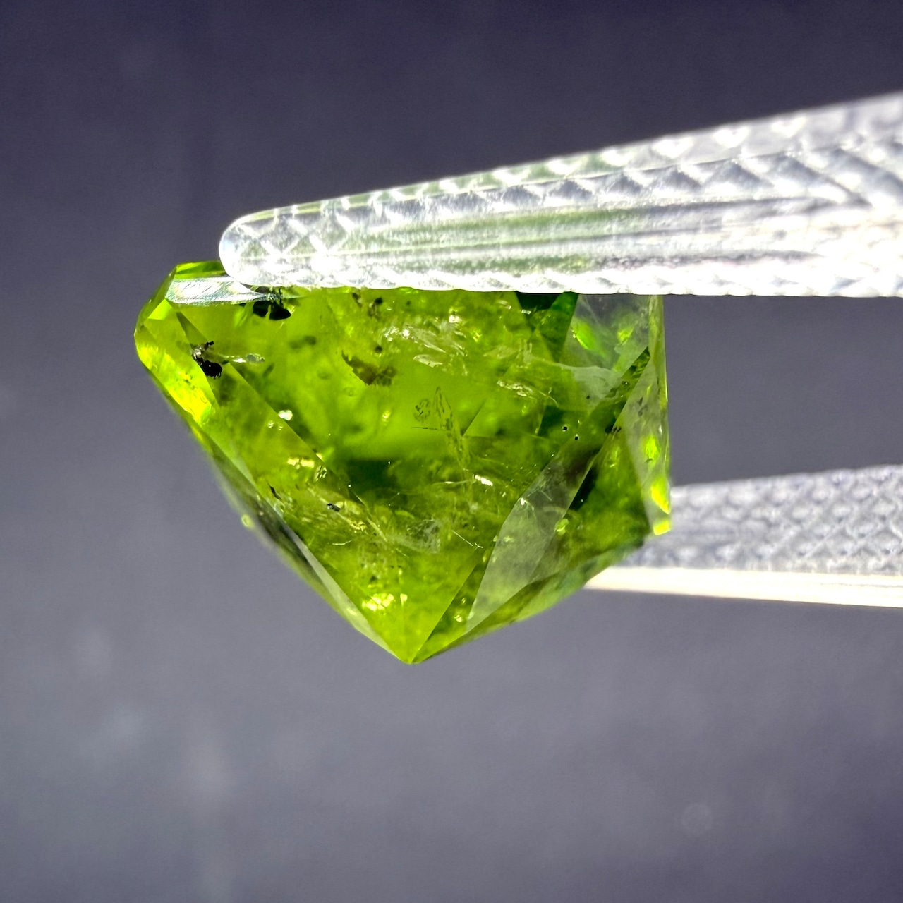 ペリドットに多いブラックポイントは少し見受けられますが、目立つクラックや激しめのチップはございません。